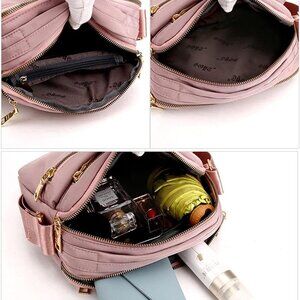 MATERIAL - This stylish crossbody bag is made of premium nylon with polyester lining, light, water repellent and easy to clean. Good quality golden metal hardware, smooth zippers and good quality workmanship.
