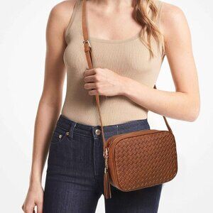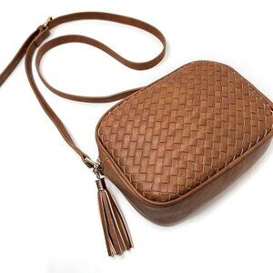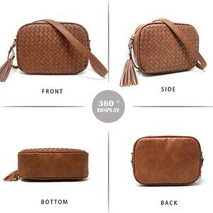 Size & Design Details 8.5" x 6.0" x 2.8" 0.66LB. Cross body purse and cross body bag for women: Large capacity, Lightweight, Soft leather, comfortable fabric lining, Strong gold-tone hardware, Durable smooth zip, Exquisite stitching, Weave front and Tassel design leading a boho and fashion style.