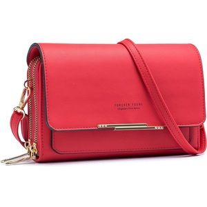 Small Crossbody Shoulder Bag Cardholder Purse or Handbag Forever Young Red