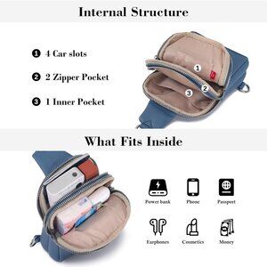 Practical structures:the fanny packs for women has 2 x main zippered pockets and 4 RFID-blocking card slots; Good for quick, on-the-go trip; Roomy enough to store phone,sunglasses, cash, coins, cards, keys, passport and other essentials; Versatile and good looking