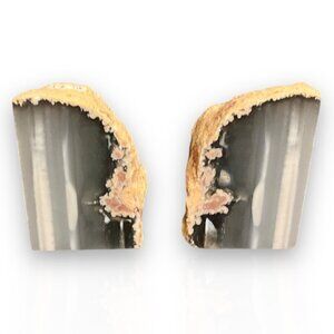 Small Crystal Bookends, Natural Agate Bookends Raw Edge Polished Surface