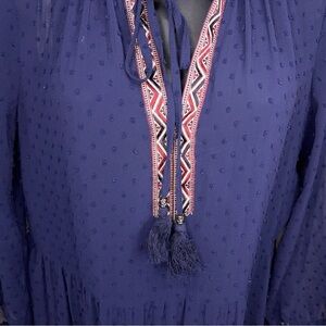 Small Daniel Rainn Blue Dress Boho Peasant Long Sleeve Embroidered Accent Lined