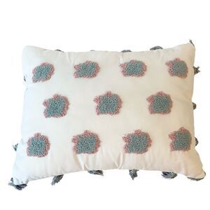 Small Decorative Rectangle Throw Pillow with Clouds and Pompoms