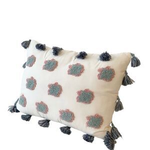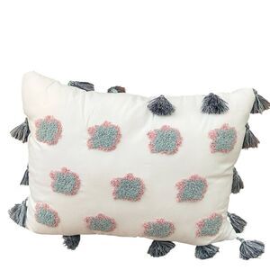 Small Decorative Rectangle Throw Pillow with Clouds and Pompoms