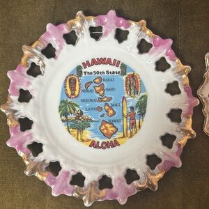 Small Decorative Souvenir Plates with Pink and Gold Accents Hawaii and Vegas