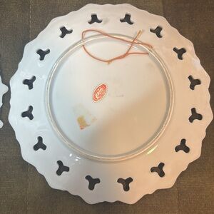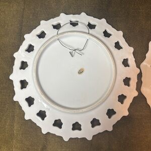 Set of two decorative souvenir plates. Features vibrant designs with pink and gold accents.