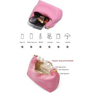 Small Designer Top Handle Clutch Bag for Women Crossbody Purse Pink Pearl Tote