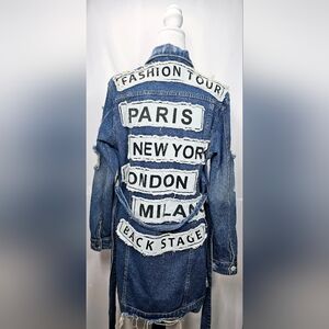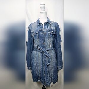 Small Distressed Denim Jacket Dress with Fashion Tour Design