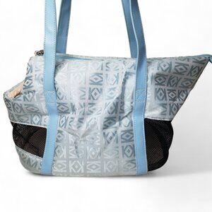 Small Dog Carrier With Shoulder Strap Geo Pattern Mesh Walls.
