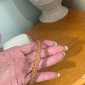 Small Dooney and Bourke wristlet has zip closure. ID window on back side inside has 4 slip pockets, white patent leather, bag has wrist strap with dog claw clasp that 1 side can be taken off attached to the inside of your bag, has small amount of color transfer from the bag I had it in shown in photos