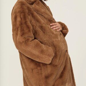 Small - EMILIA GEORGE - Faux Fur Maternity Coat Camel Teddy $545 msrp