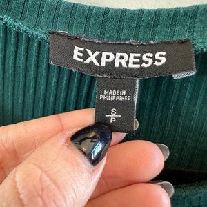 Women’s size small from Express. Beautiful green short sleeve top with tie back. Ribbed design. Excellent condition. Pet free and smoke free home.