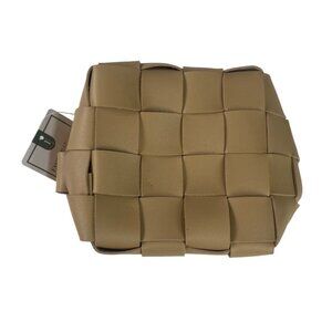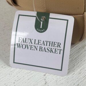Small Faux Leather Woven Basket Tan Beige Storage Home Decor