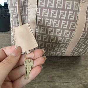 Pale pink/neutral small fend Boston bag zucchino canvas. Originally purchased from Rebag for $700 in good condition. I personally used it a total of two times. Comes with a lock and key, the Rebag authentication card, and the Rebag dust bag.