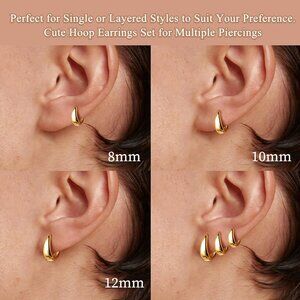 Features: This set includes three pairs of stylish chunky hoops made from 14K gold-plated brass. They're lightweight, hypoallergenic, and easy to put on and take off with secure clasps that hug your lobes comfortably. Perfect for sensitive ears, waterproof, and designed to withstand daily wear without tarnishing. Great for dressing up or casual outings, offering multiple looks in one set.
