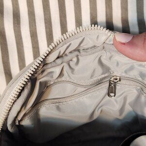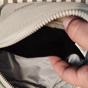 Inside has a small zipper pocket on one side and elastic pockets on the other side.