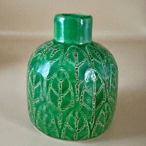 Green ceramic vase with embossed pattern 3 3/4' tall