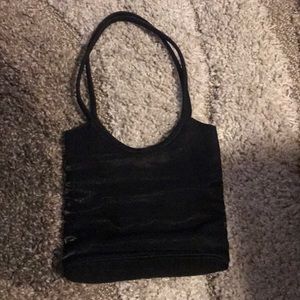 Black small handbag to accessorize with for a nice formal event. Has a soft iridescent shine to it inside zipper can hold a nice amount of items.