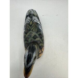 Small Handpainted Wooden Wood Mallard Ducks Birds Figurine glass eyes