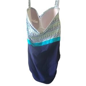 Small Helen Jon Navy Blue White & Green One Piece Halter Swimsuit