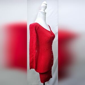 Style: Ribbed, body-hugging, long-sleeve sweater dress with button-up front