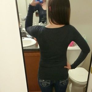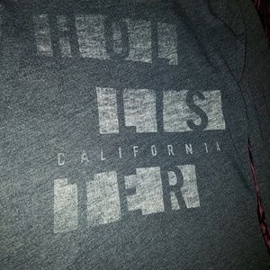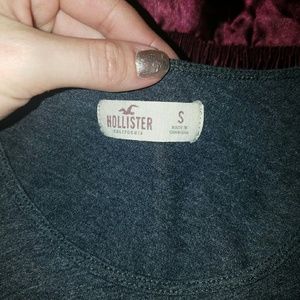 Dark gray with light gray words. Long sleeve. Super soft!!! Small. Hollister. Wore this MAYBE 5 times.