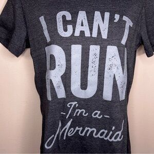 Small I Can’t Run I’m A Mermaid Tee Short Sleeve Womens Grey White Gift