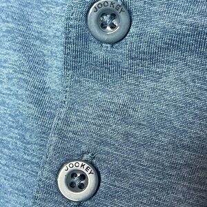 Small Jockey Blue half button down short sleeve shirt used in great condition.