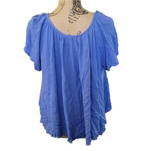 Small Karen Kane Sky Blue Short Sleeve Peasant Top Blouse