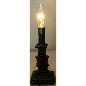 Small Resin Metal Colored Lamp with Purple Glass Center Accent Table Nightlight