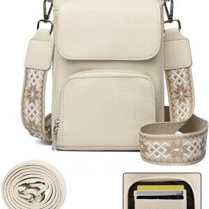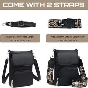 Features: Stylish and versatile, this lightweight leather crossbody has a smart layout with three credit card slots, four exterior zip pockets, and a main compartment with added slip and zip pockets — making it super easy to stay organized. Comes with two interchangeable straps: an adjustable guitar-style strap and a detachable leather strap, so you can wear it as a shoulder bag, crossbody, clutch, or pouch.
