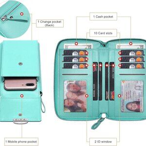 Features: This cute leather crossbody features a secure zipper closure, with multiple compartments including a front phone pocket, back zipper pocket, cash slot, 10 card slots, and 2 clear ID windows. It’s perfect for keeping your essentials neat and accessible, whether you're headed out shopping, traveling, or just running errands. The adjustable strap makes it versatile and comfortable for all-day wear.