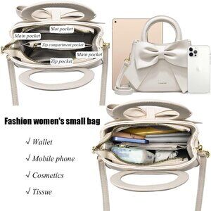 Features: Crafted with premium PU leather, this mini satchel offers a sophisticated look with a functional design. It features a stylish bow knot detail, gold hardware accents, and a versatile mix of top handle and crossbody strap — ideal for busy days or quick errands. Despite its small size, it has multiple pockets to keep your essentials organized.