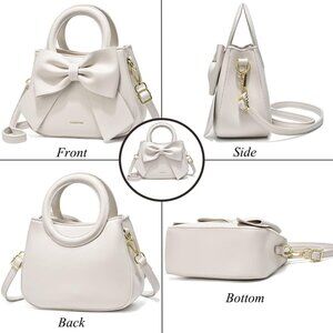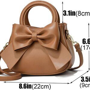 Small Leather Handbag Women Carry Handle Bow Knot Purse Crossbody Organizer