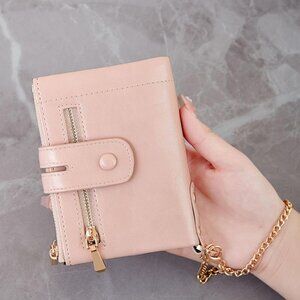 Small Leather Wallet for Women RFID Bifold with Removable Wristlet Pink