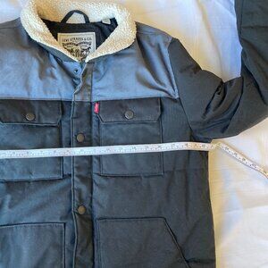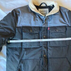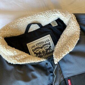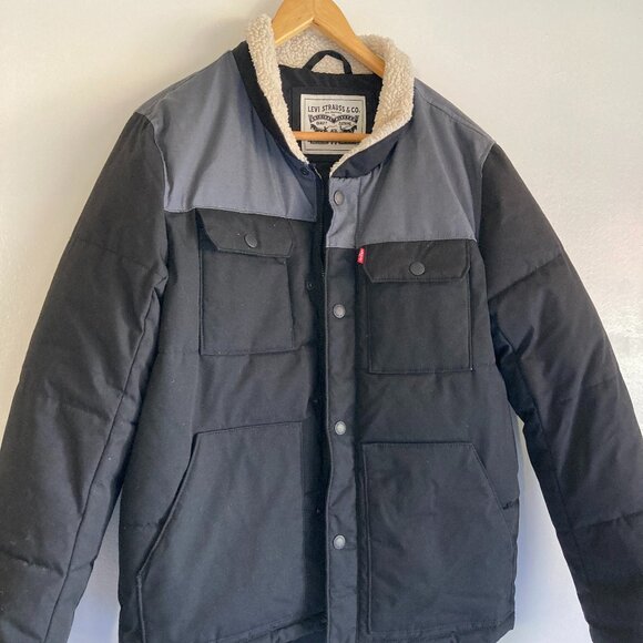Small Levi's Sherpa Collar Utility Workwear Jacket Black Gray Colorblock Puffer