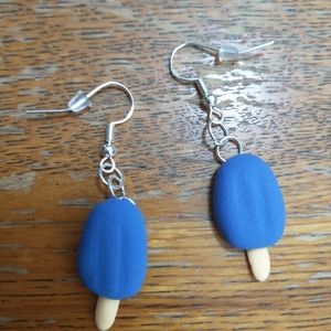 Small Lightweight Air Dry Clay Handmade Blue Popsicle Earrings