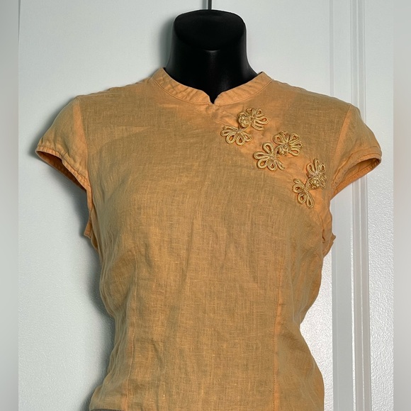 Linen top by Alexander Bartlett size small measures 18"ptp,22"L great condition. Peachy orange color.