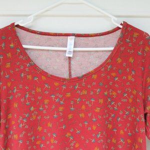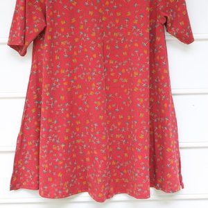 Underarm to underarm it measures 18" long. It's super soft and stretchy and I feel like it never needs to be ironed. Cozy and autumnal, perfect for frolicking or foraging for berries and mushrooms.