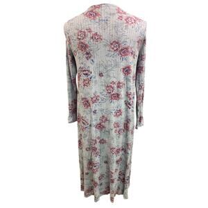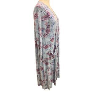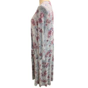 Small LulaRoe Womens Sarah Duster Long Cardigan Gray Floral Pockets