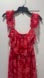Chic red maxi dress with floral pattern. Only work once. Flowy with an off-the-shoulder ruffle neckline, fully lined. Smoke-free home.