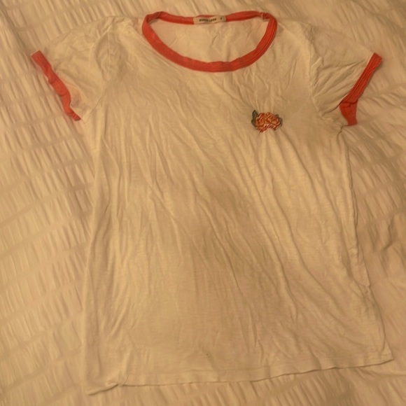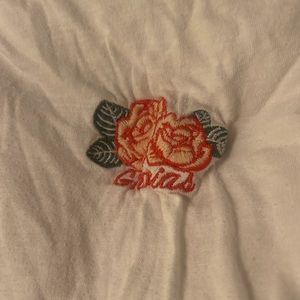 Embroidered with a rose that says “gracias” under it. Very soft.