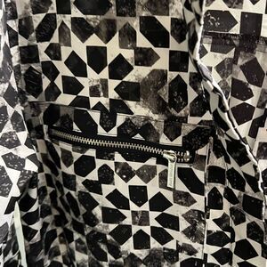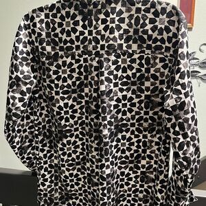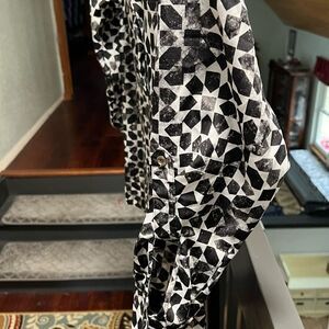 Stylish women's top featuring a bold geometric pattern in black and white. Perfect for any occasion. Length 25”, pit to pit 20”. From a smoke free home