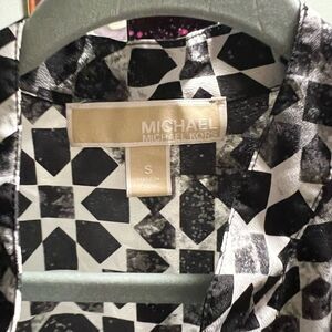 Small Michael Kors Geometric Black & White Adjustable Long Sleeve Blouse #083