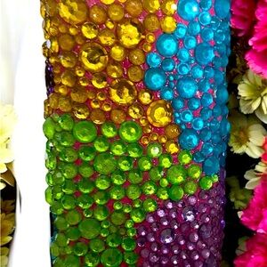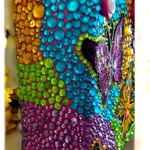 •Colorful handbag with sequins of shiny rhinestones and butterflies.