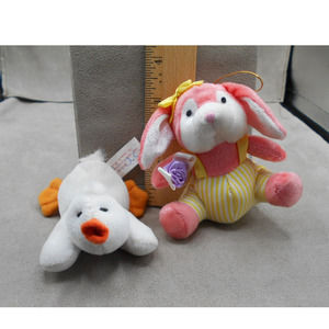Small Mini Plush Animal Lot Vintage: Giftco Duck, Rabbit, Fable Creatures
