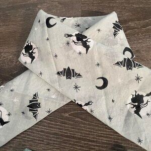 Crop top and spooky handkerchief bundle: Mint green sleeveless mock neck crop top (tag was removed). Free handkerchief with crescent moon, bats, and a witch riding her broomstick.