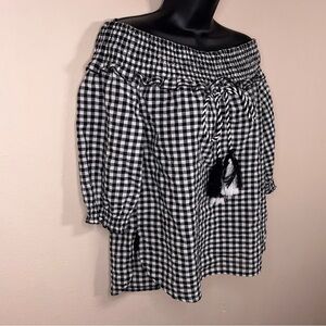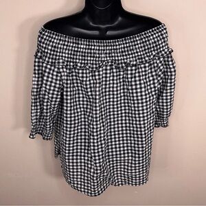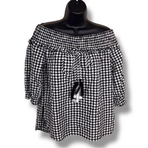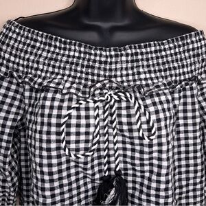 Small Mud Pie Brand Gingham Top Peasant Black White Checkered Half Sleeve