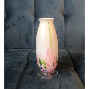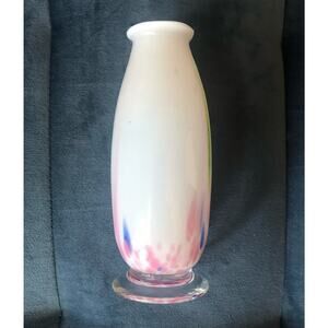 Small Murano Inspired Glass Handblown Vase Tulip Shaped White w/ Multicolor
