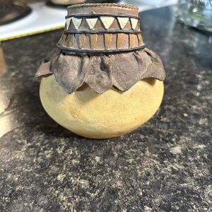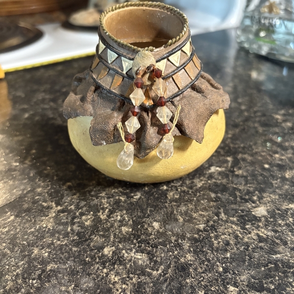 Small pottery style Native American themed vase/ trinket dish.
